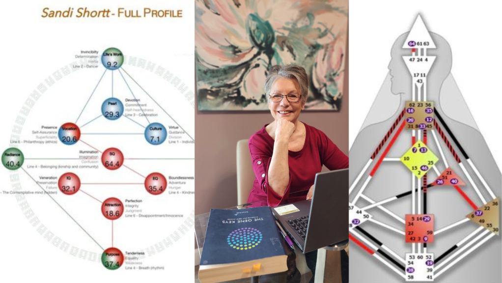 All of the above images are pictures of me! There is my gene key profile, my outer persona and my human design profile.